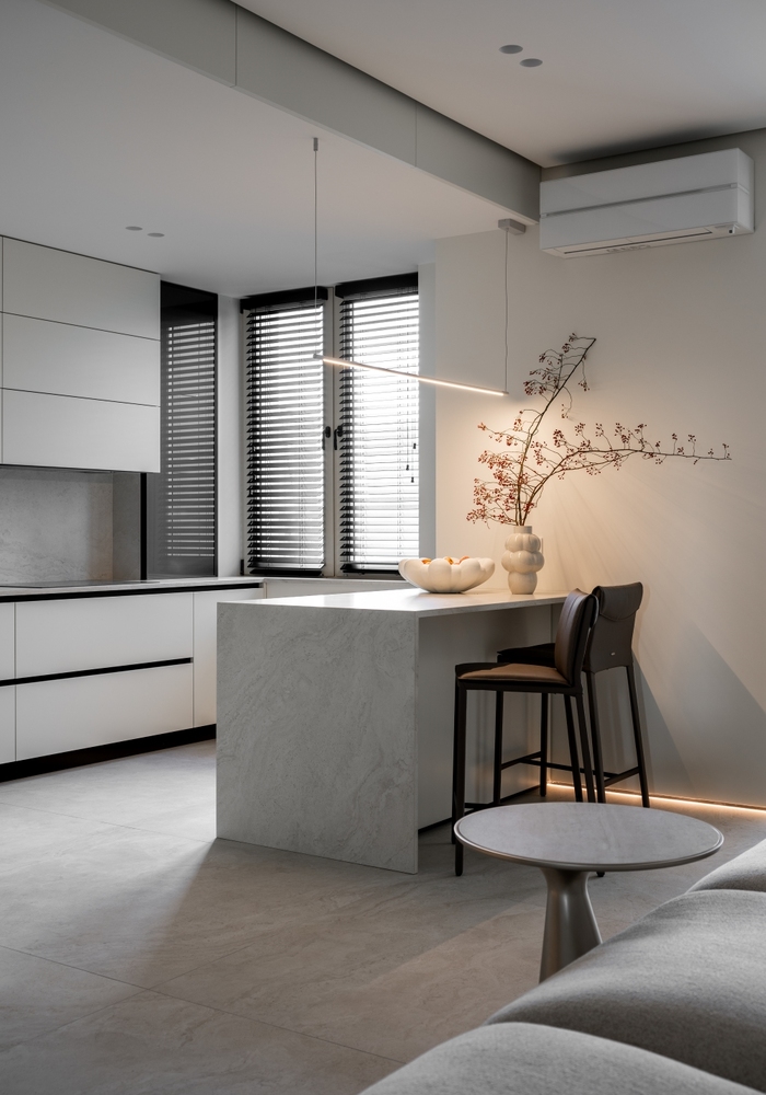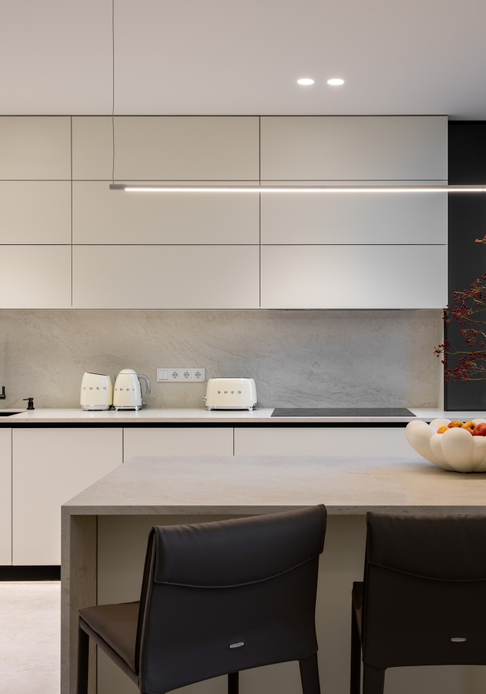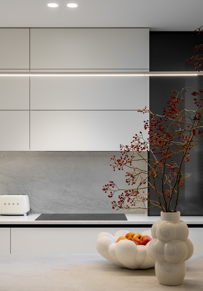 Design: Elizaveta Vornikoglo, D3 Buro Mobilier: MDF vopsit / Furnital Italia Panouri de perete: MDF vopsit Foto: Oleg Bajura